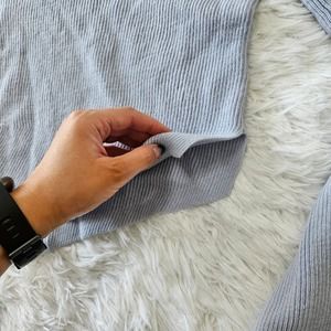 Frank & Oak Women's Baby Blue 100% Merino Wool Asymmetrical Hem Turtleneck Sweater. Size XXS