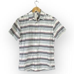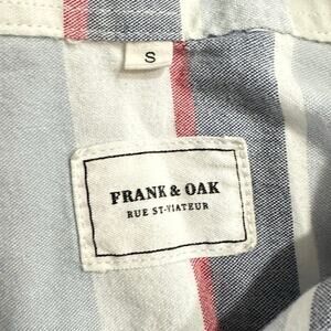 Frank & Oak Button Down Shirt Men Small White Gray Striped Short Sleeve Collared