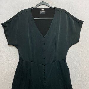 Frank & Oak Jumpsuit Womens SP Black V Neck Elastic Waist Wide Leg