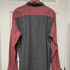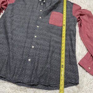 Frank & Oak Men's Button Up Shirt Textured XXL Gray Red