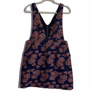 Frank & Oak Pinafore Dress Large Blue Pink Floral Jacquard Feminine Overalls