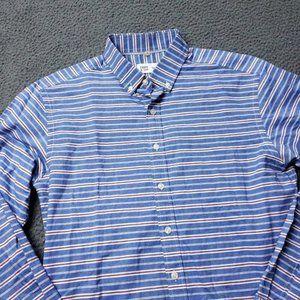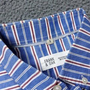 Frank & Oak Striped Button Shirt Blue Mens S Small Long Sleeve