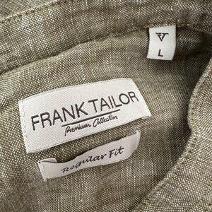 Frank Tailor Premium Collection Regular Fit Button Up Shirt. Made from luxurious linen and super versatile shirt. Mandarin collar neckline and long cuffed sleeves. 100% linen machine wash, no flaws.
