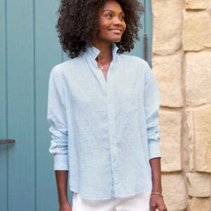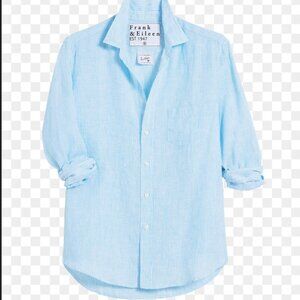 Frank and Eileen EILEEN Turquoise Stripe Classic Linen Turquoise Stripe Button Down Shirt in Size Small - Worn Once for a few Hours