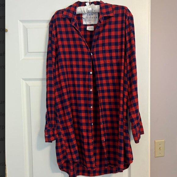 This Frank and Eileen shirtdress (can be worn as a shirt) is a blue and red navy check. It is a size large and has been worn only a handful of times. It is perfect for fall and winter!