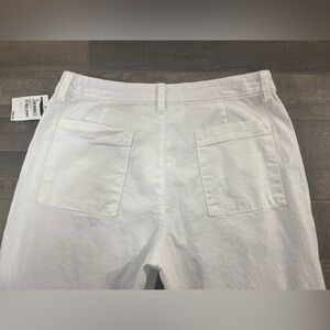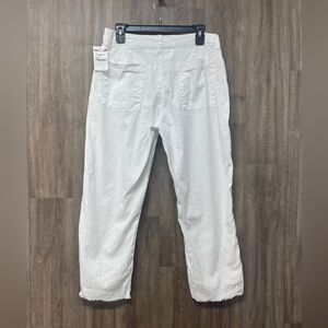Frank and Eileen White Kinsale Cropped Pants w/ Raw Hem Cotton and Flax Blend
