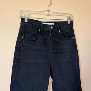 Frank and Eileen Women's 26 Monaghan Black Straight Mom Jeans Distressed Raw Hem