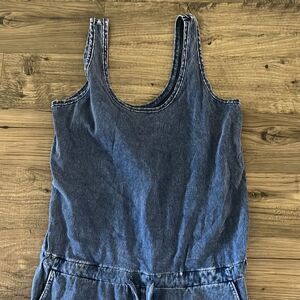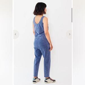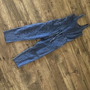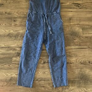 Get to the fun faster with a one-and-done jumpsuit rendered in denim blue and made from a super soft cotton jersey. Pull-on style. Drawstring waist allows for a customizable fit. Relaxed by design, for a slimmer look, you may choose to size down.