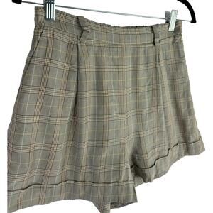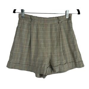 Frank and Oak Linen Blend Shorts Brown Plaid Size 4
