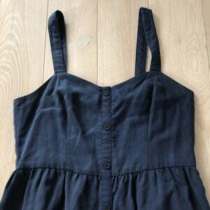Frank and Oak Linen Blend Sweetheart Neckline Tiered Midi Dress in Navy Size S