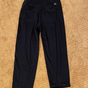 Comfortable stretch fabric. High rise pants with two hidden pockets (6 total), plus reflective tape and snaps for biking. Too small for me now but a truly great commuter pant that dresses up or down.