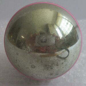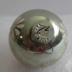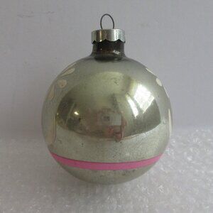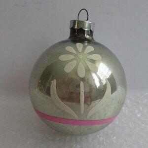 Franke Christmas Ornament Silver Ball White Flower Pink Stripe Vtg Made in USA