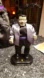 Frankenstein figurine wearing a silver jacket and black pants. Features a purple belt. He sings and he used to dance His eyes Light up I had him packed away but new batteries in it maybe you can get him to dance sometimes he moves look at the picture and videos are video on pictures