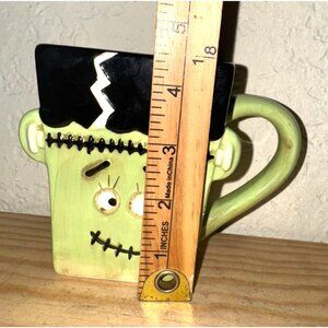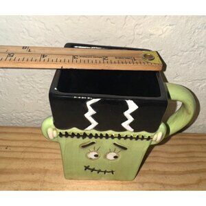 This Frankenstein-themed mug by Kim Sharp adds a quirky touch to your drinkware collection. Its square shape and playful design make it a standout piece, whether used for your morning coffee or as a decorative item. The mug is both microwave and dishwasher safe, ensuring practicality alongside its unique appeal.