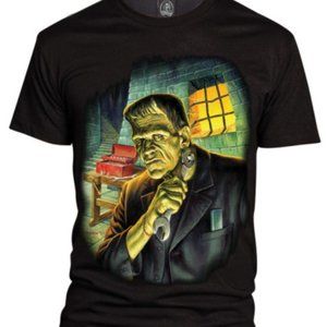 Pay homage to classic Frankenstein with this awesome T shirt. Universal Rock Rebel design is a one of a kind art showing Frankie tightening up his hardware. Exclusive limited edition and bright colors make this a T shirt a must have to add to your collection of fright night nostalgia. Sizes are listed under classic "Mens" and are true to size cotton material.
