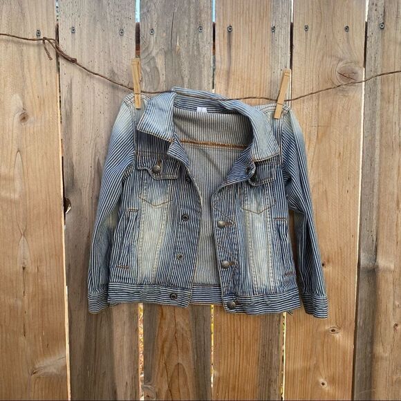 Frankie & Ava Striped Trucker Jacket Sz 5 Collared Long Sleeve Snap Button Down
