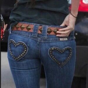 Vintage Y2K Frankie B. “Heart of Steel” Studded Heart Pocket Low Rise Jeans ULTRA RARE and made famous by Megan Fox!