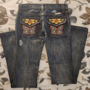 Frankie B Limited Edition Jeans - Embroidered Butterfly Pockets & Boot Cut Leg