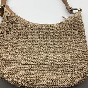 Frankie & Johnnie Shoulder Bag Purse Beige Crochet Rope Floral Coastal Boho
