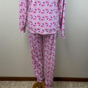 Frankie & Johnny S Pink Flamingo Velour Pajama Set Soft Shirt Jogger Pants