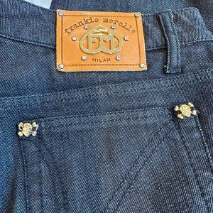 Frankie Morello Jeans Size 28 Slim Straight Leg w/ Gold Tone Skull and Crossbone Studs Streetwear