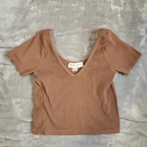 Cute crop top from a boutique. Fabric is ribbed and stretchy. Worn a few times but in great condition!