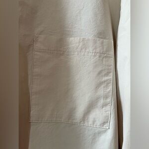 This Frankie Shop button down shirt is a classic. It features Frankie Shop’s signature high cut side slit and pleating on the back shoulder and sleeve, creating a super chic silhouette. The light cotton poplin is crisp and breezy. The classic collar and front pocket add the finishing touch. Super easy to style.