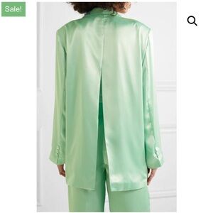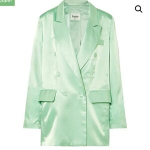Elevate your style with this chic mint green satin blazer. Perfect for any occasion, this jacket adds a touch of elegance to your wardrobe.
