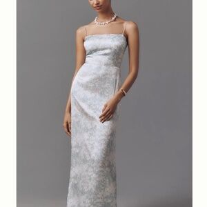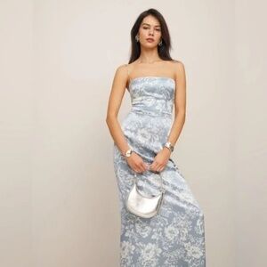 Slinky. Shop the Frankie Silk Dress from Reformation, a slim fitting dress with a straight neckline, spaghetti straps, and a center back slit.
