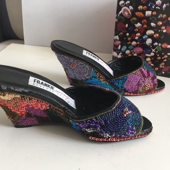 Frankie and Baby. By Beverly Feldman. Brigette beaded and sequin wedge. Open toe.
