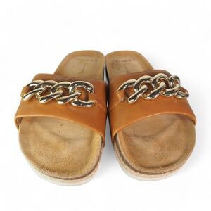 Frankie4 Quinn Chain Detail Slide Sandals Tan / Gold 2384 Women's 8.5