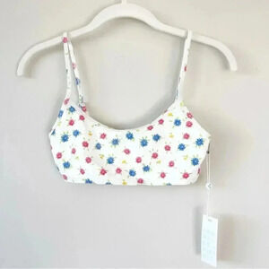 Frankie’s Bikinis Bay View Floral Bralette Bikini Top in Water Blossom Small NWT