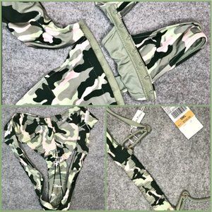 Frankie's Bikinis Camo Corset Top Skimpy Bottom Bikini Swim Two Piece Set Small