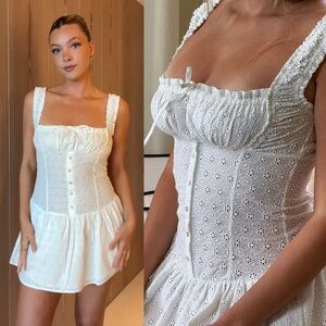 Tags: frankies bikinis dress, christa dress, eyelet mini dress, prairie dress, white mini dress, spring dress, ruffle dress, cotton dress, feminine, picnic, cottagecore, boho, bohemian, girly, dainty, soft girl, weekend, vacation, bridal shower, angel’s wings