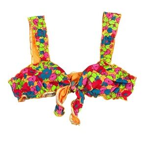 Frankie’s Bikinis Colby Groovy Tie Front Ruffle Bikini Top