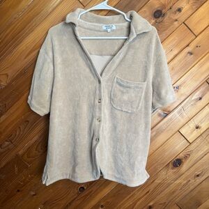Frankie's Bikinis Cream Coco Terry Cloth Button-Down Shirt Size Large
