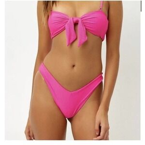 Frankies Bikinis Enzo Ribbed Cheeky Bikini Bottom Cherub Barbie Pink Medium New