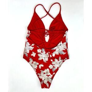 Frankies Bikinis Janelle One-Piece Swimsuit Red Floral Azalea Cheeky Cut Size M