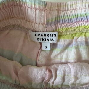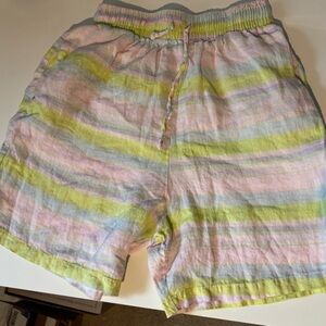 Frankie’s Bikinis Lou High Waisted Stripe Shorts Summer Stripe Sz Small 100% Linen