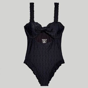 Frankies Bikinis Lucia Eyelet One-Piece Swimsuit Black 2X