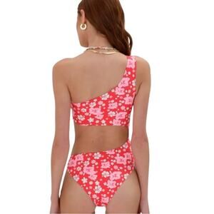 Frankies Bikinis Mila Floral One Piece Swimsuit Peek-a-boo cut out