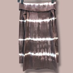 Size XS. Very soft and smooth. Stretchy. Lightweight. Ribbed neckline and cuffs. Elongated sleeves. Flattering, body-hugging fit. Brownish-purple color. Cotton and spandex (92, 8%).