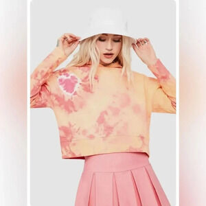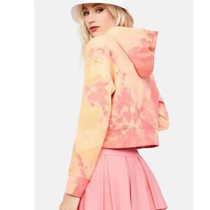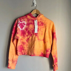 Sherbert cotton candy colored tie dye sweetens a cropped hoodie made from super soft cotton. Kangaroo pocket. 100% cotton. Machine wash. Made in the USA. New with tags