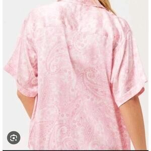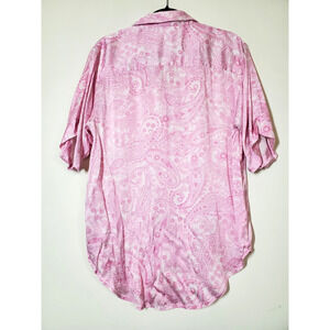 Frankies Bikinis Silk Womens Small Button Up Cover-Up Top Beach Pink Paisley