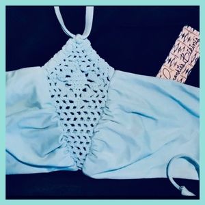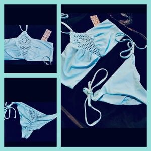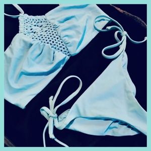 Frankies Bikinis Skimpy Ruched Crochet Two Piece Halter Brazilian Blue Harlow