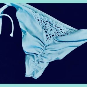 + Skimpy bottoms with back ruching; crochet detailing at back.