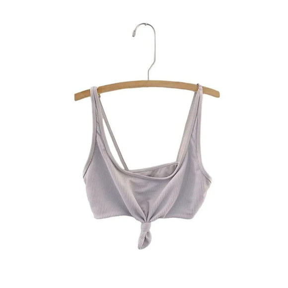 Frankies Bikinis Swim Top Bikini Tie Front Knot Grey