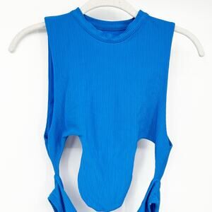 Frankies Bikinis Womens Blake Tie Front Ribbed One Piece Swimsuit in Blue. Size small.