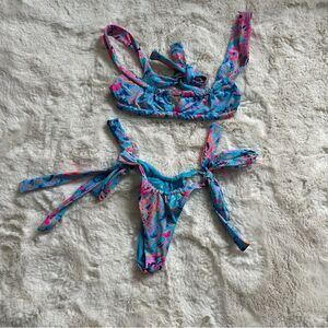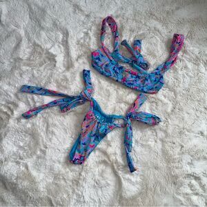 Frankies Bikini’s blue groovy scarf print Willow bikini TOP ONLY