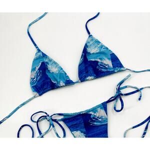 Frankie's Bikinis tia waves Blue triangle bikini top
